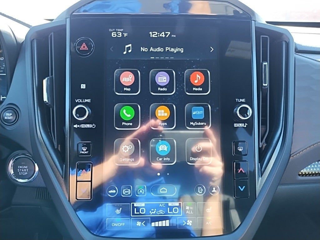 - Radio: Subaru 11.6" Multimedia Plus System -inc: valet mode, integrated center information display, AM/FM stereo HD Radio, multi-touch gesture high resolution display screen, voice activated controls, Bluetooth® audio streaming and hands-free phone connectivity w/SMS text messaging (refer to Subaru.com for cellphone compatibility), iPod control capability, smartphone integration: Android Auto and Apple CarPlay w/full screen view and wireless connection, USB and Over The Air (OTA) audio system update, steering wheel controls, 6 speakers, 3.5mm auxiliary input jack and roof mounted audio and satellite antenna