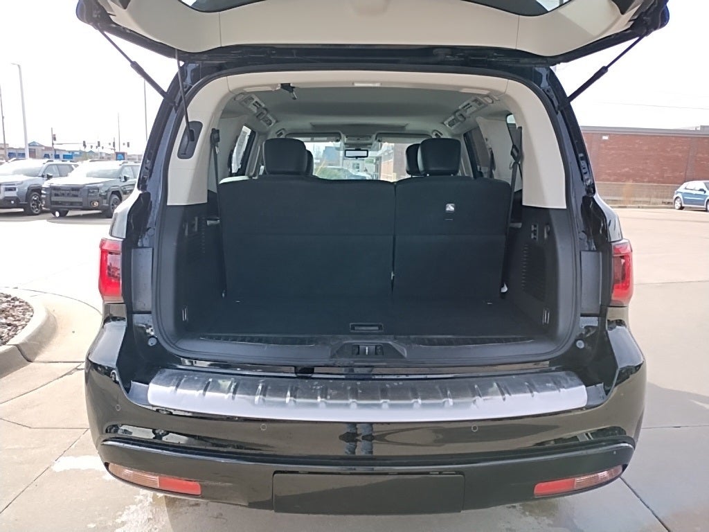 Under the hood, this QX80 delivers commanding performance with a **5.6L V8 paired with a 7-speed automatic transmission and Full-Time All-Wheel Drive**. Capability and control come from **4-wheel disc brakes with Anti-Lock Brakes and Brake Assist, brake-actuated limited slip differential, air suspension, power steering, electronic transfer case, 2.937 axle ratio, skid plate, 150-amp alternator, 26-gallon fuel tank, maintenance-free battery with run-down protection, and a maximum payload of 1,464 lbs**because luxury should still be ready to work when needed.