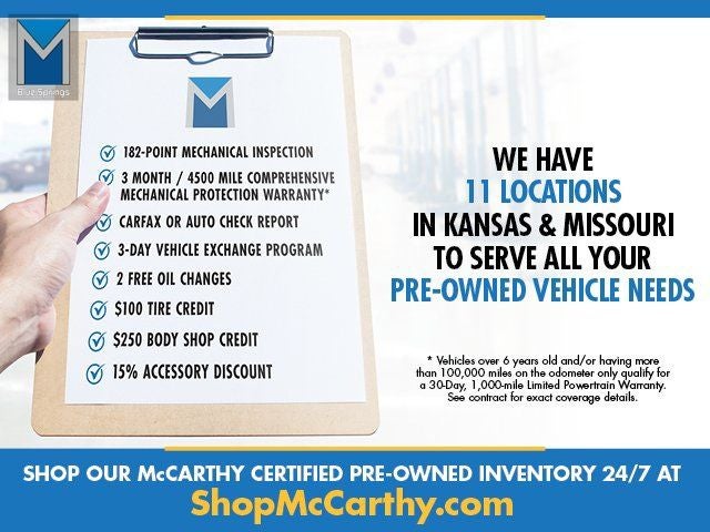 McCarthy Certified Plus allows you to have peace of mind with your purchase: - 90 Day Power Train Warranty - 182 Point mechanical inspection - 2 COMPLEMENTARY OIL CHANGES - CARFAX Report.